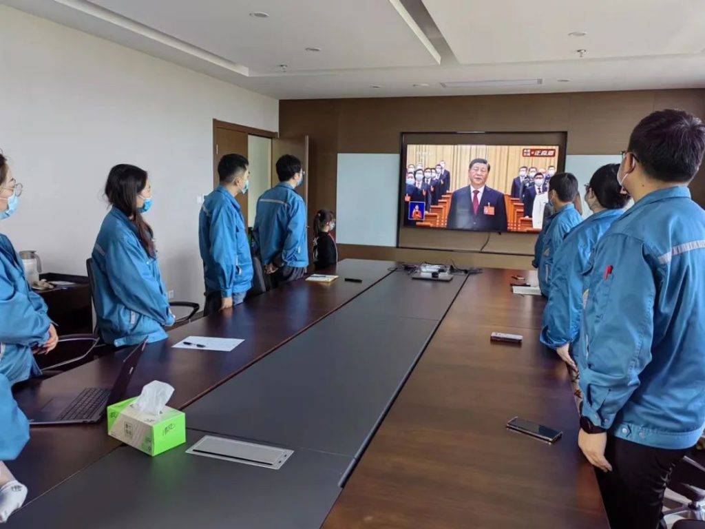 在這歷史性時刻,中國共產(chǎn)黨紐邁黨支部組織公司20多名黨員和職工代表觀看黨的二十大開幕會,認真聆聽總書記的工作報告。