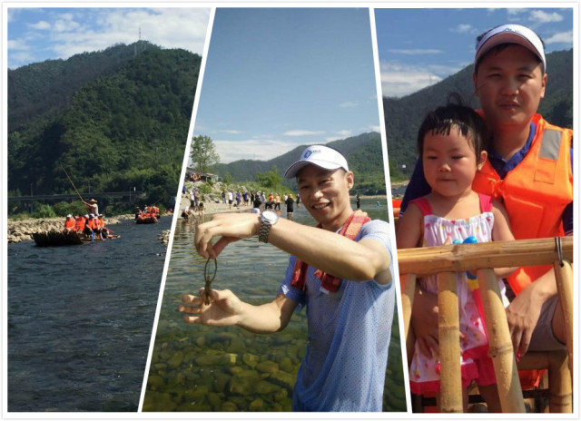 看此筏有勇士一枚,主動(dòng)出擊,遭致全筏被四處包圍,水珠從各個(gè)方向飛來,無法抵擋,更無法抓捕瘋狂潑水的鏡頭。一番激戰(zhàn),幾番清涼!只嘆征途太短暫,終究有重點(diǎn)!留個(gè)倩影,記住這精彩瞬間。還有那衣衫雖濕透,不忘練練抓蝦功的哥們,同樣樂在其中的小可愛們!