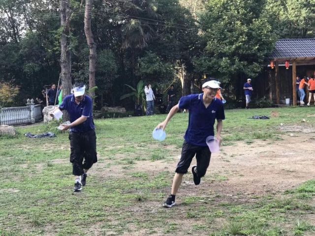 午餐和簡單休整之后,下午,團(tuán)建拉開戰(zhàn)幕,分成10支隊(duì)伍,男女搭配,威武登場,隊(duì)旗、口號(hào)、戰(zhàn)歌,一樣都不能少;隊(duì)長、隊(duì)蜜、保安,一個(gè)都不能缺。兩兩對(duì)陣,抑或團(tuán)隊(duì)配合,聽指揮,尋幫助,合作第一,共贏至上。