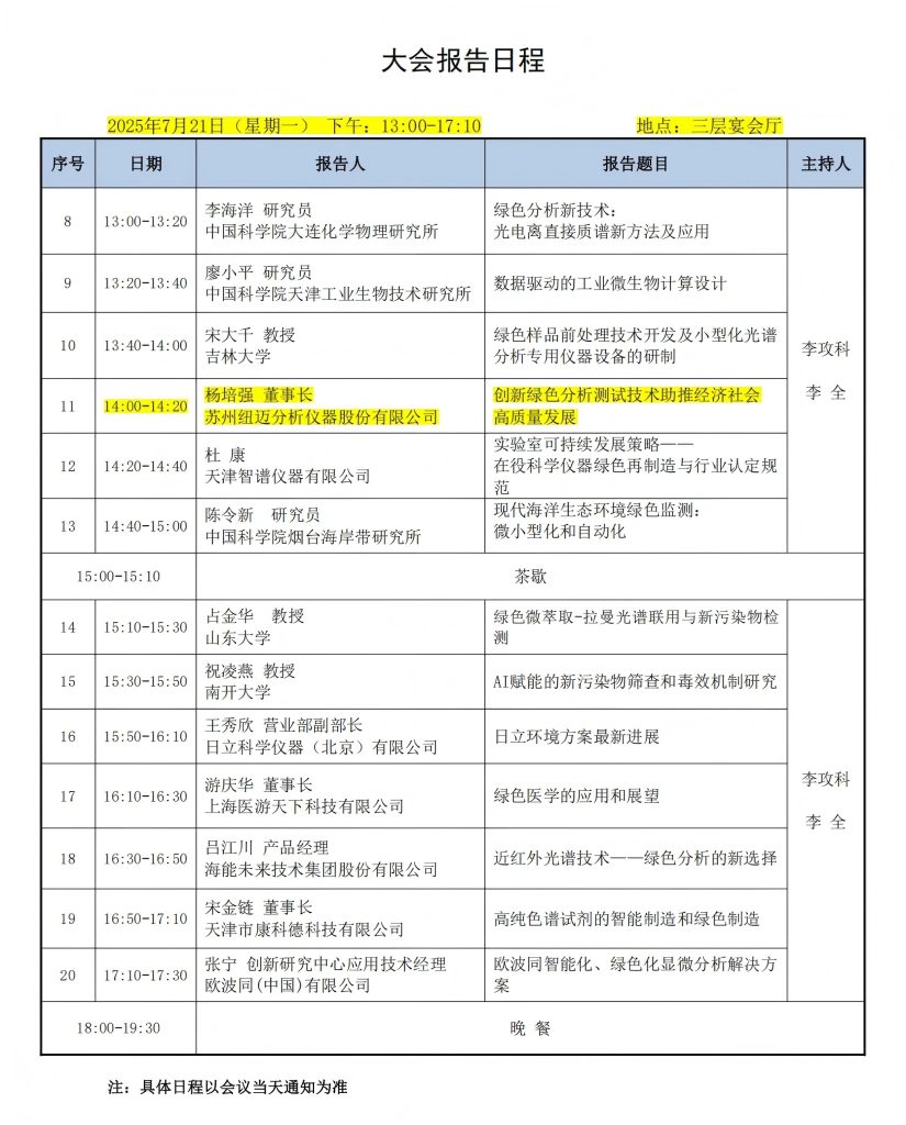 在這場盛會中,紐邁分析董事長楊培強將帶來一場主題報告——《創新綠色分析測試技術助推經濟社會高質量發展》。楊董將結合紐邁在低場核磁共振(NMR)技術領域的深厚積累與綠色創新實踐,分享前沿洞見。