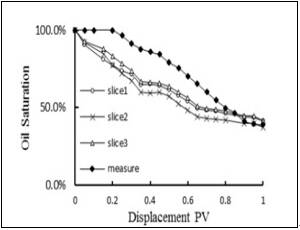 驅替過程整體信號逐漸變弱,第二層巖心的信號衰減速率大于第三層和第四層,與成像圖相符。一方面可以利用核磁共振測試對樣品內部驅替過程進行評價,另一方面,結合核磁共振成像技術,可對驅替過程巖心內部流體變化情況作直接了解。
