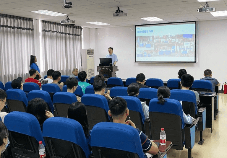 活動中,紐邁分析產品總監高楊文向在場師生介紹了紐邁的發展歷程、產品應用領域、低場磁共振技術原理等;