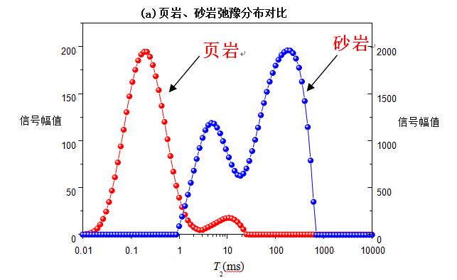 頁巖與砂巖的弛豫時間分布圖有很大差異,頁巖專用低場核磁設備可以檢測到納米級孔隙信號。
