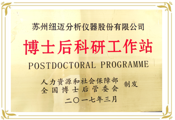 蘇州紐邁博士后工作站于2015年被江蘇省人力資源部批準成立, 2017年經國家人力資源和社會勞動保障部批準升格為國家級博士后科研工作站。截至目前,博士后工作站已累計培養和出站博士后10人,目前在站博士后4人;在出站博士后中,多人獲得了江蘇省“雙創博士”、蘇州高新區創新人才、江蘇省科技進步獎、國家青年基金、中石油科研基金;他們之中,多人并發表了多篇SCI/EI論文及專利,同時參與企業的科研工作,參與制定行業、團體和企業標準,對相關產業的規范化和標準化做出了積極貢獻。