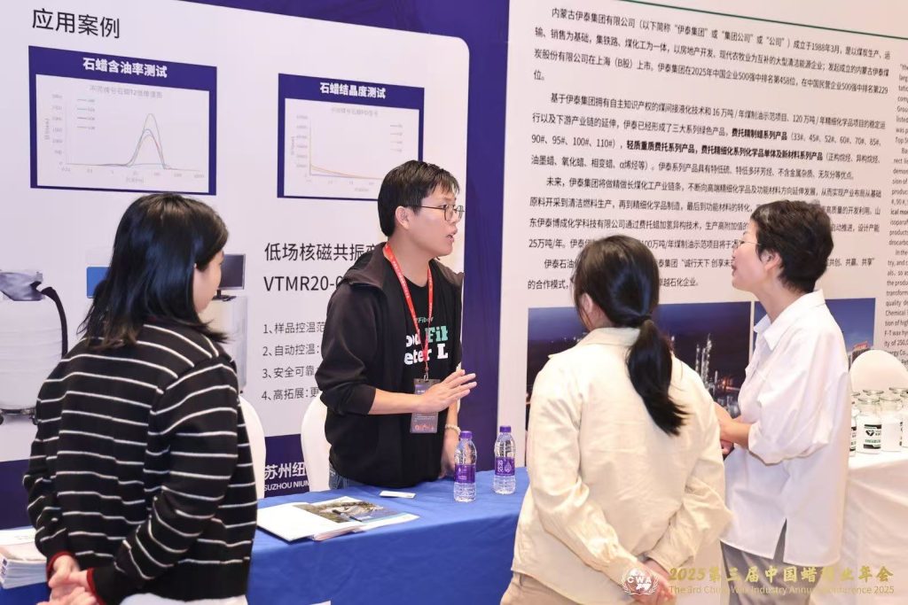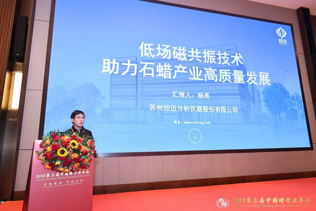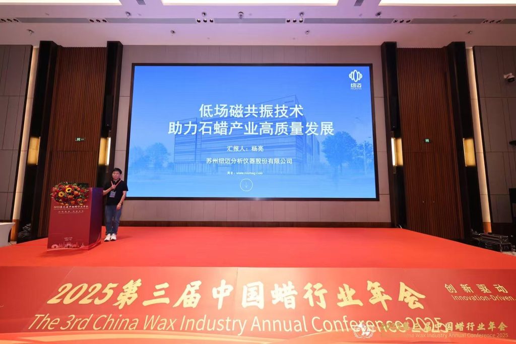本次年會聚焦蠟行業高端化、國際化發展路徑及產業升級中的關鍵挑戰,吸引了眾多行業專家與企業代表參與。蘇州紐邁分析儀器股份有限公司攜低場核磁共振技術參加本次會議,公司產品經理楊亮在會議上作了《低場磁共振技術助力石蠟產業高質量發展》 的專題報告。