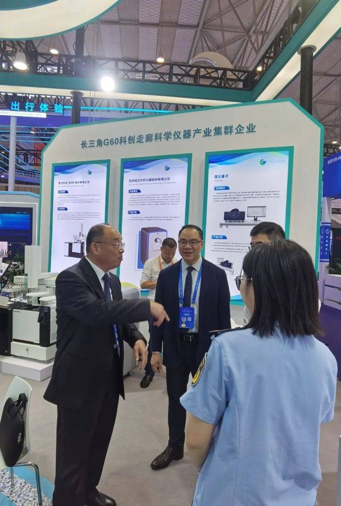 現(xiàn)場,長三角G60科創(chuàng)走廊科學儀器展區(qū)吸引了來自江蘇省、浙江省、四川省等省市級質(zhì)檢系統(tǒng)等多個單位領(lǐng)導(dǎo)蒞臨展位參觀交流。