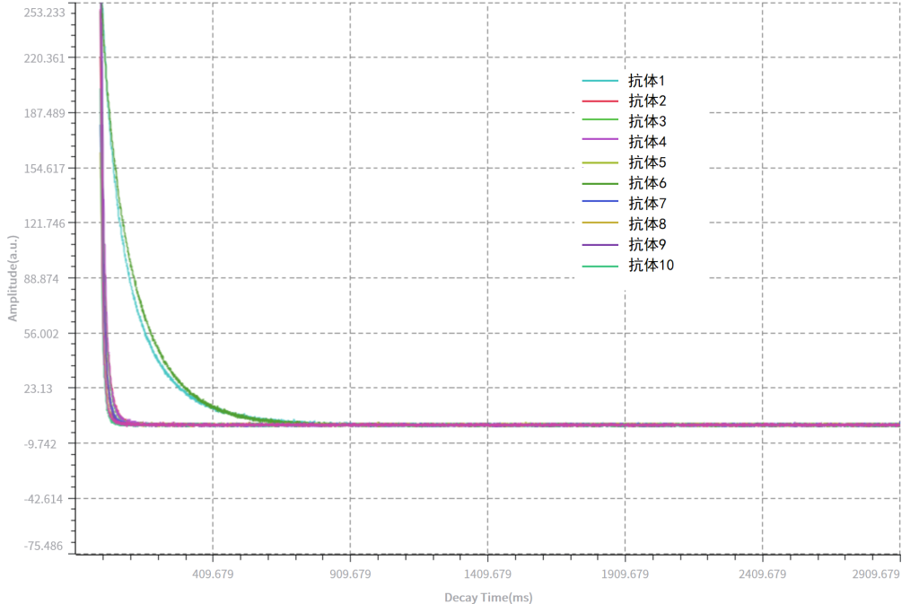 測試2批次十個mAb單抗樣品的T2弛豫時間,可以對樣品進行快速的分類和篩選,并且可以明顯區分不同的抗體樣品。