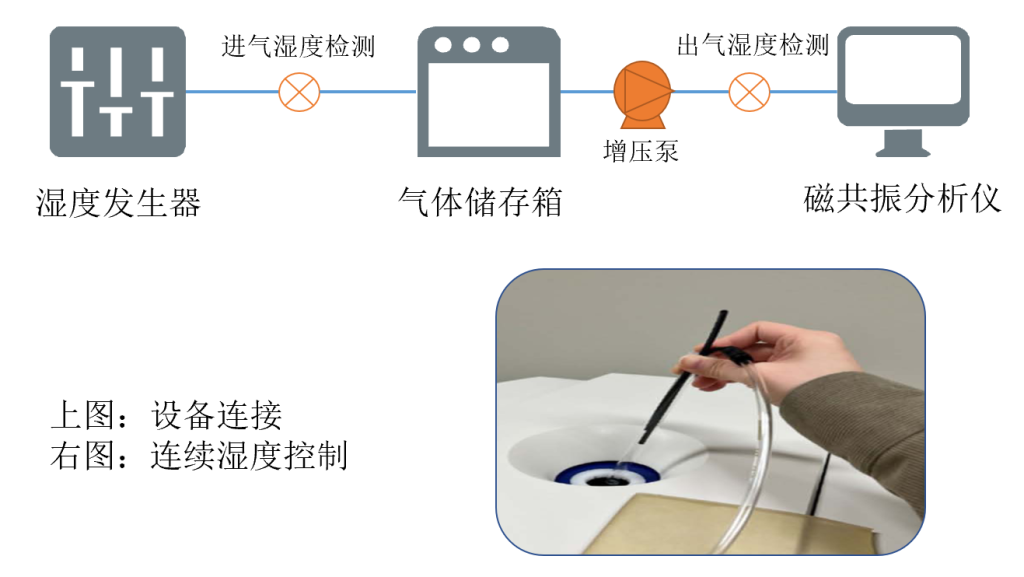 將200毫克干燥樣品稱量后放入NMR管中,并將濕度控制器連接到NMR管上,通過泵將控制濕度的空氣(80% RH)送入NMR管。