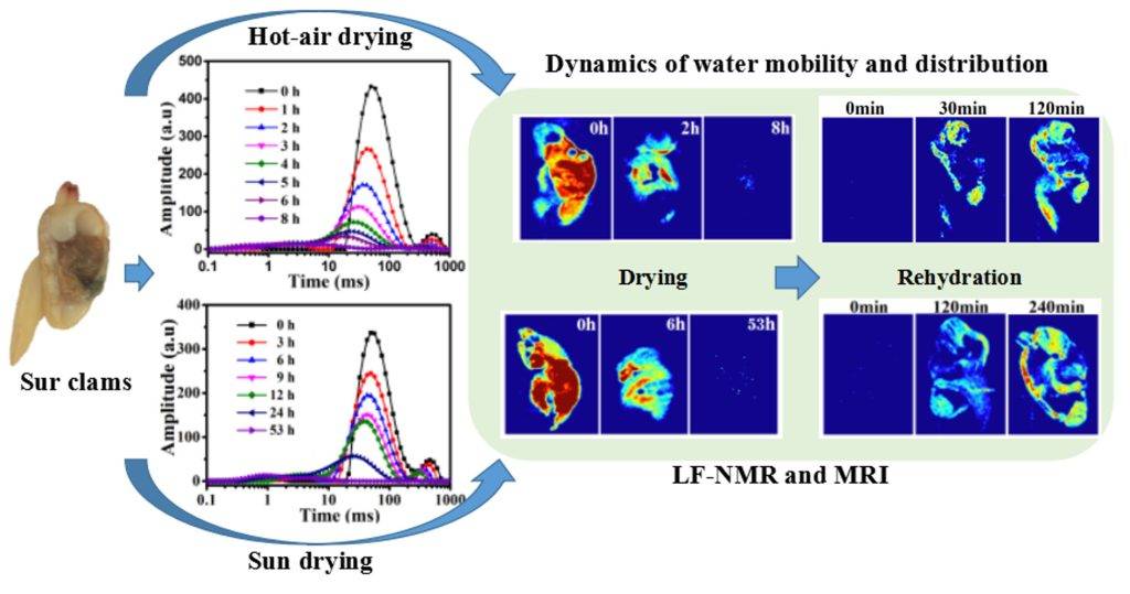 利用低場核磁共振這種快速無損的技術檢測青柳蛤不同干制過程中水分的動態變化,區分不同干燥方式制得的青柳蛤樣品。