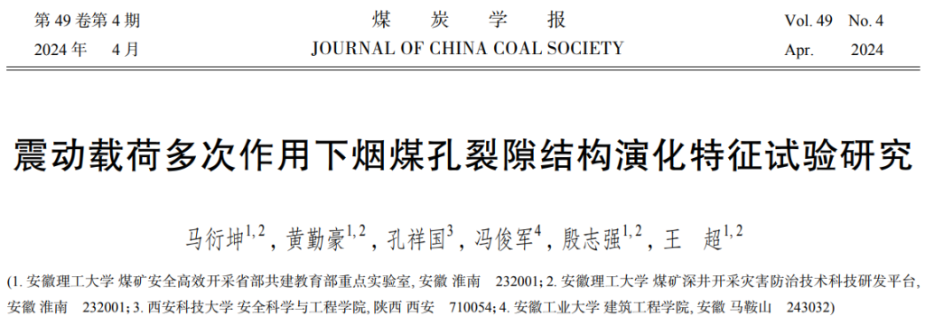 【文獻解讀】安徽理工大學馬衍坤教授團隊《煤炭學報》:震動載荷多次作用下煙煤孔裂隙結構演化特征試驗研究