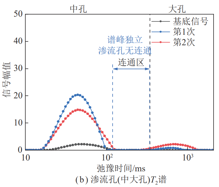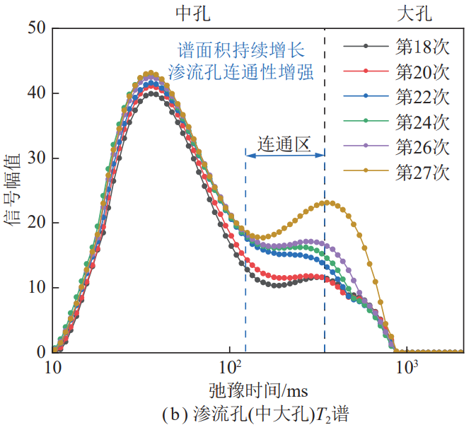 圖五 吸附孔激增階段煤樣T2譜演化曲線