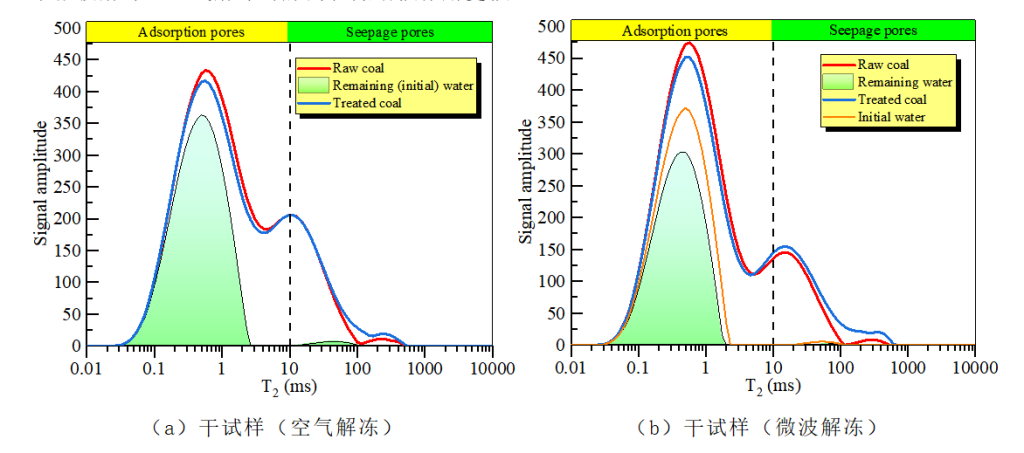 圖二空氣解凍和微波解凍煤試樣的T2曲線