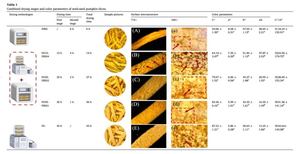 【文獻解讀】冷凍干燥和遠紅外聯合干燥技術對籽用南瓜理化特性的影響
