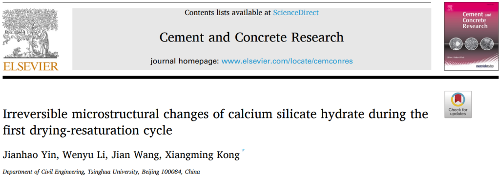 [1] Yin J, Li W, Wang J, et al. Irreversible microstructural changes of calcium silicate hydrate during the first drying-resaturation cycle[J].Cement and Concrete Research, 2023.