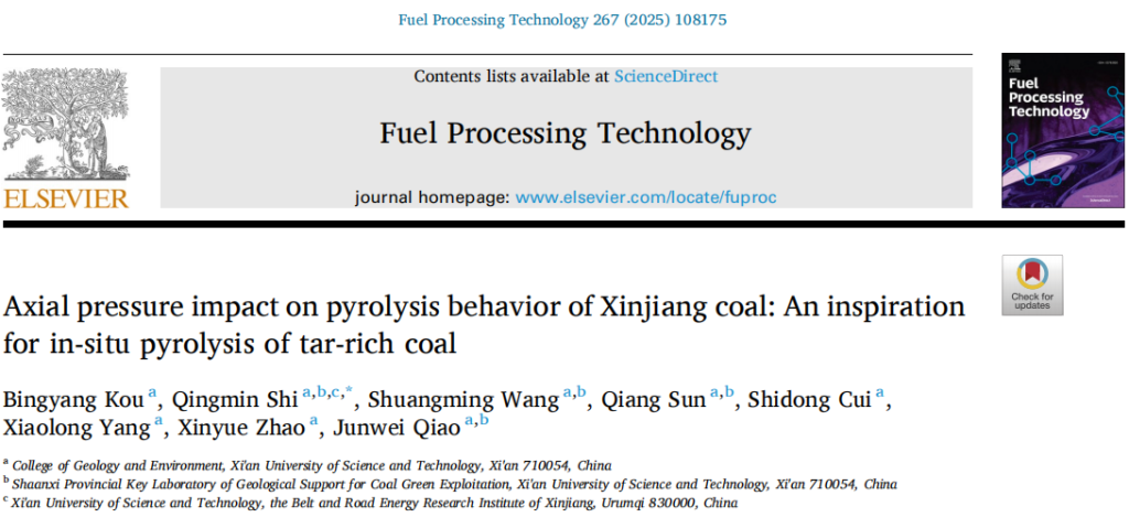 文獻解讀|西安科技大學師慶民教授團隊《Fuel Processing Technology》:軸向應力對新疆某區塊煤樣熱解行為的影響:富油煤原位熱解的啟示