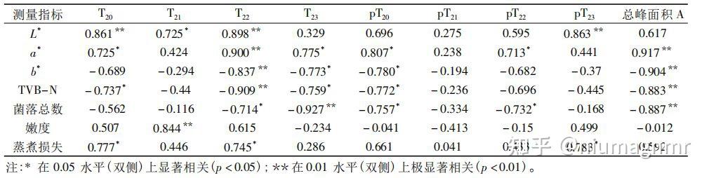 LF-NMR T2與測量指標(biāo)的相關(guān)系數(shù)