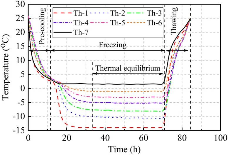 3.凍結過程持續了60小時,以達到熱平衡,使得每個監測點的溫度穩定下來。