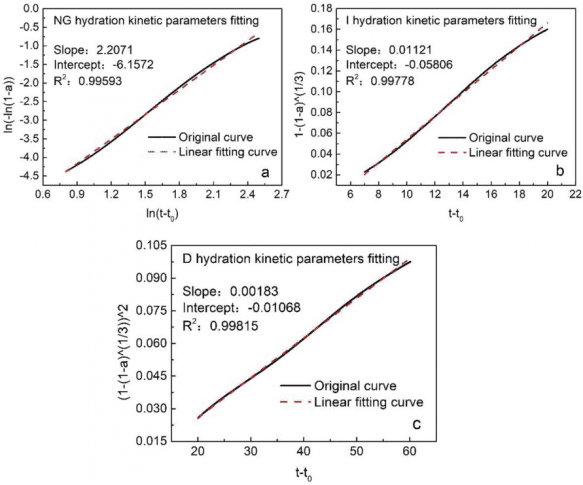 圖3 波蘭特水泥不同水化過程(NG、I、D)的線性擬合結果